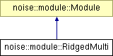 This noise module, heavily based on the Perlin-noise module, generates ridged-multifractal noise. Ridged-multifractal noise is generated in much of the same way as Perlin noise, except the output of each octave is modified by an absolute-value function. Modifying the octave values in this way produces ridge-like formations.