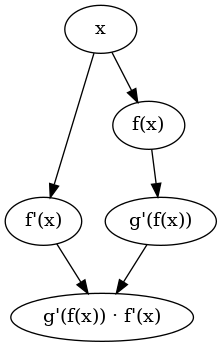 >>>x = variable "x">>>call (backpropExpr "g" <<< backpropExpr "f") xg(f(x))