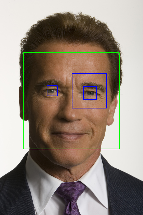 cascadeClassifierArnold :: forall (width :: Nat) (height :: Nat) (channels :: Nat) (depth :: * ) . (Mat (ShapeT [height, width]) ('S channels) ('S depth) ~ Arnold_small) => IO (Mat (ShapeT [height, width]) ('S channels) ('S depth)) cascadeClassifierArnold = do -- Create two classifiers from data files. Just ccFrontal <- newCascadeClassifier "data/haarcascade_frontalface_default.xml" Just ccEyes <- newCascadeClassifier "data/haarcascade_eye.xml" -- Detect some features. let eyes = ccDetectMultiscale ccEyes arnoldGray faces = ccDetectMultiscale ccFrontal arnoldGray -- Draw the result. pure $ exceptError $ withMatM (Proxy :: Proxy [height, width]) (Proxy :: Proxy channels) (Proxy :: Proxy depth) white $ \imgM -> do void $ matCopyToM imgM (V2 0 0) arnold_small Nothing forM_ eyes $ \eyeRect -> lift $ rectangle imgM eyeRect blue 2 LineType_8 0 forM_ faces $ \faceRect -> lift $ rectangle imgM faceRect green 2 LineType_8 0 where arnoldGray = exceptError $ cvtColor bgr gray arnold_small ccDetectMultiscale cc = cascadeClassifierDetectMultiScale cc Nothing Nothing minSize maxSize minSize = Nothing :: Maybe (V2 Int32) maxSize = Nothing :: Maybe (V2 Int32)