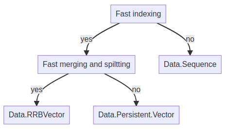 • Persistent vectors are faster than RRBVectors at snocing because of tail optimization. Snocing is a near constant time operation. Snocing is still slower than sequences.